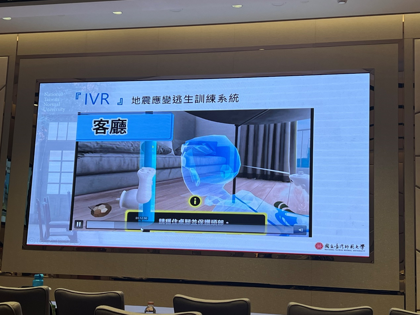 洪教授团队展示了其研究成果:火灾逃生VR系统和地震应变逃生训练系统。
