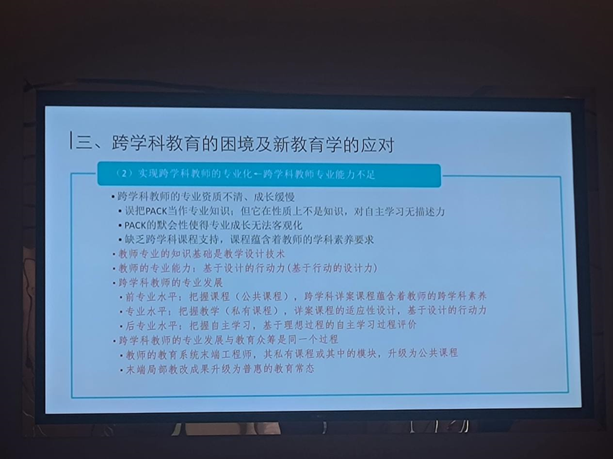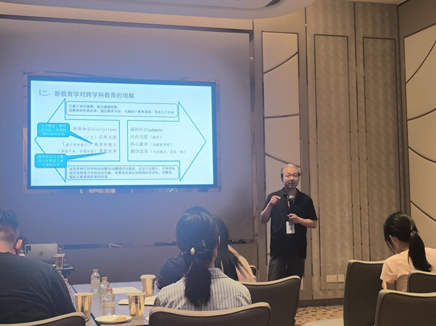 在环节一中,杨开城教授以其深厚的学术造诣和前瞻性的视野,为与会者精彩呈现了新教育学理论领域的最新研究成果与突破性进展。他深入剖析了当前教育体系中跨学科教育所面临的多重困境,并阐述了新教育学视角下的独到见解与解决之道